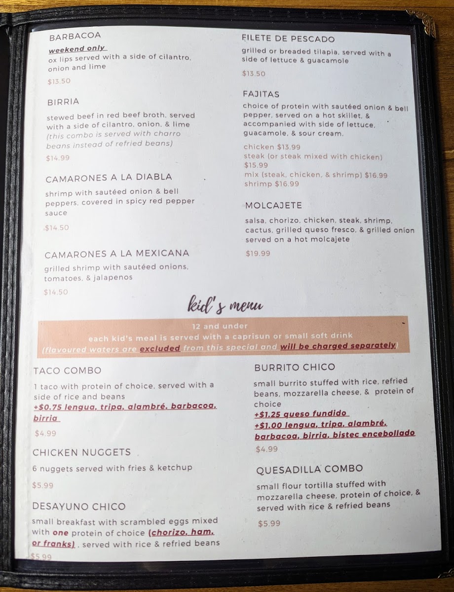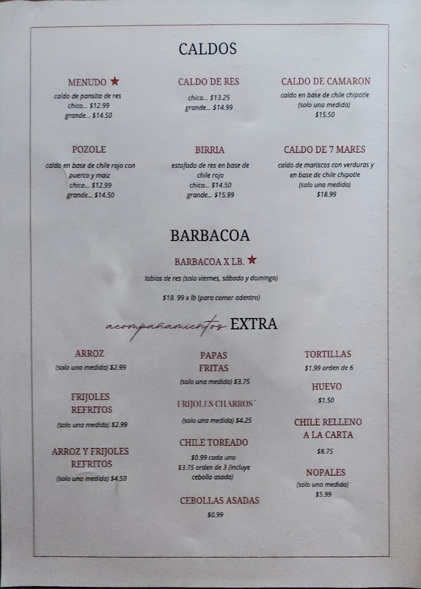 Their appetizers are a must-try, featuring Chips and Salsa, Guacamole, and Queso Fundido, perfect for sharing or savoring alone. For heartier options, indulge in traditional dishes like Menudo, Pozole, and Birria, all waiting to embrace your palate with rich, comforting tastes.